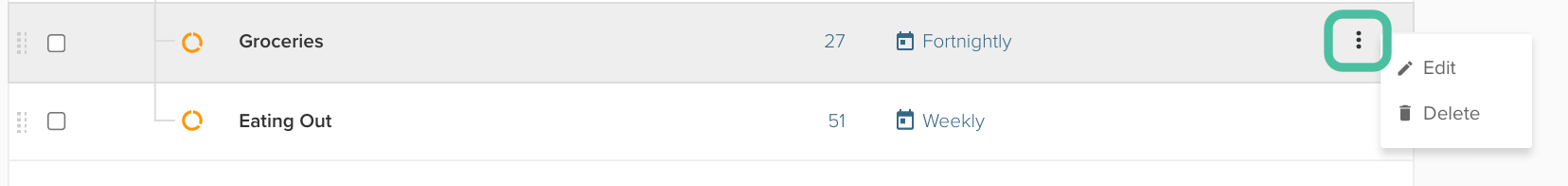 You can add and delete categories by selecting Manage and then Categories. To delete a category, click on the three dots on the right of the screen. Then it’s as simple as clicking delete.