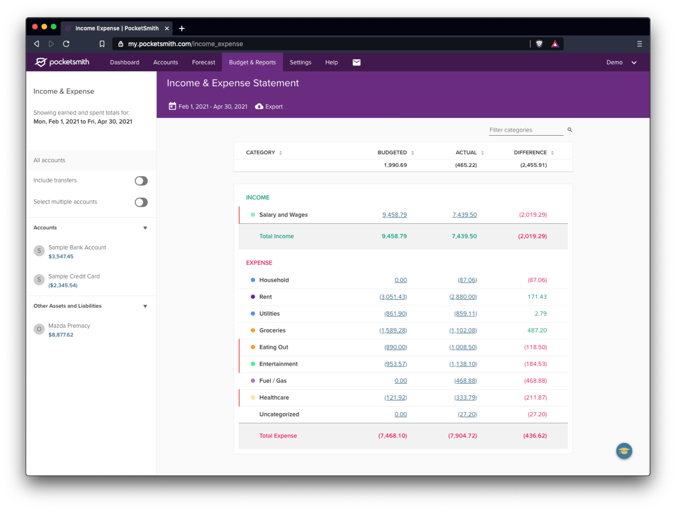 The Income and Expense Statement, April 2021