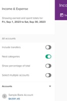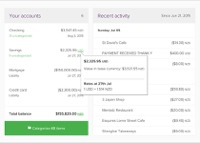 - The top accounts widget lets you keep tabs on the account balances that are top of mind for you. Tapping on an account shows you its transactions, with a tab that filters only incomes.